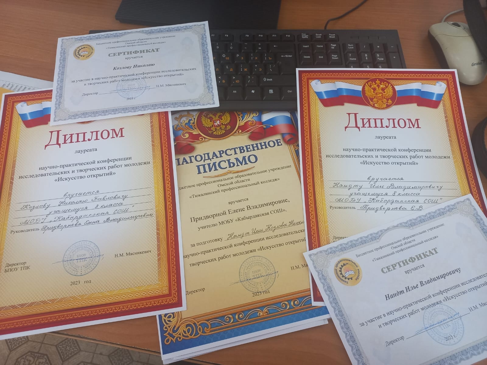 Научно-практическоая конференция в Тюкалинском колледже. Участники Николай Козлов и Илья Нандт, руководитель Е.В.Придворная. Поздравляем!!!