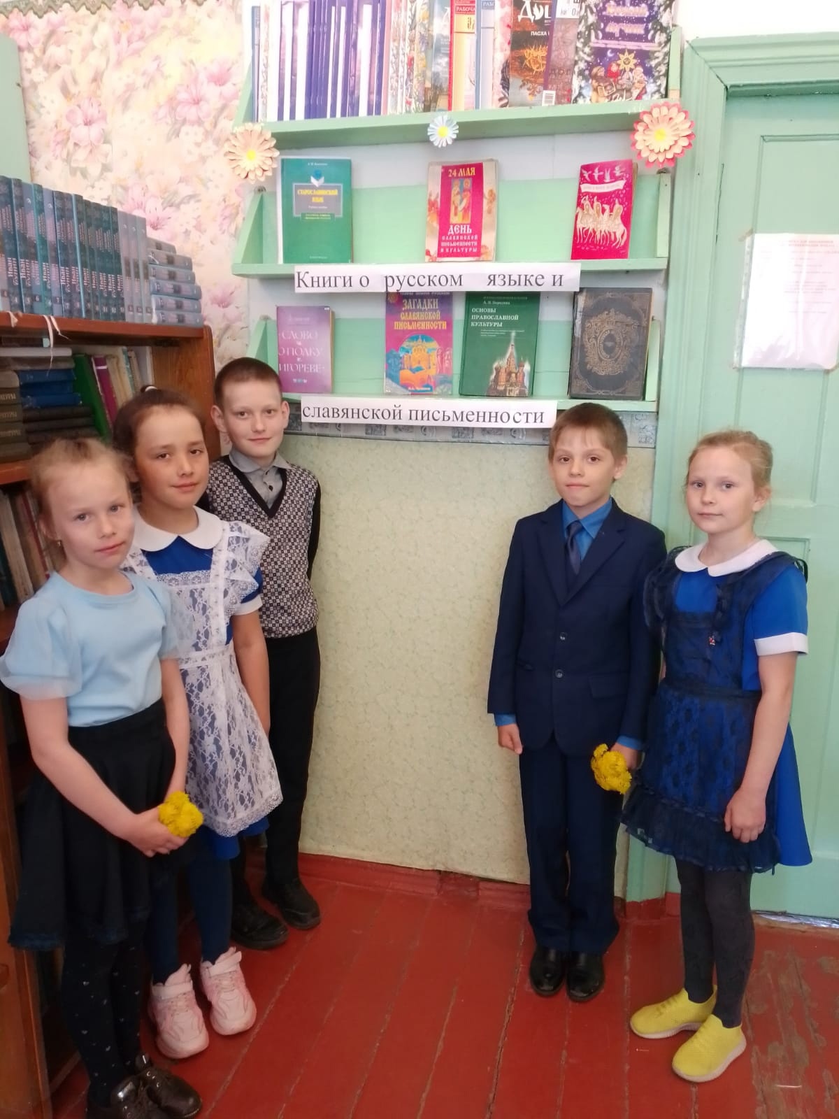 В нашей школьной библиотеке была организованна совместно с учениками выставка книг о русском языке и славянской письменности с использованием элементов славянской и русской культур.
