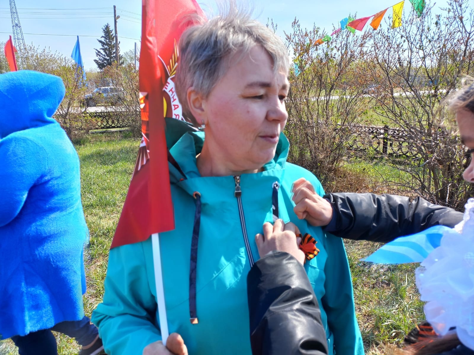 9 мая ученики школы раздавали Георгиевские ленточки, которые сами и оформили, жителям и гостям села Кабырдак